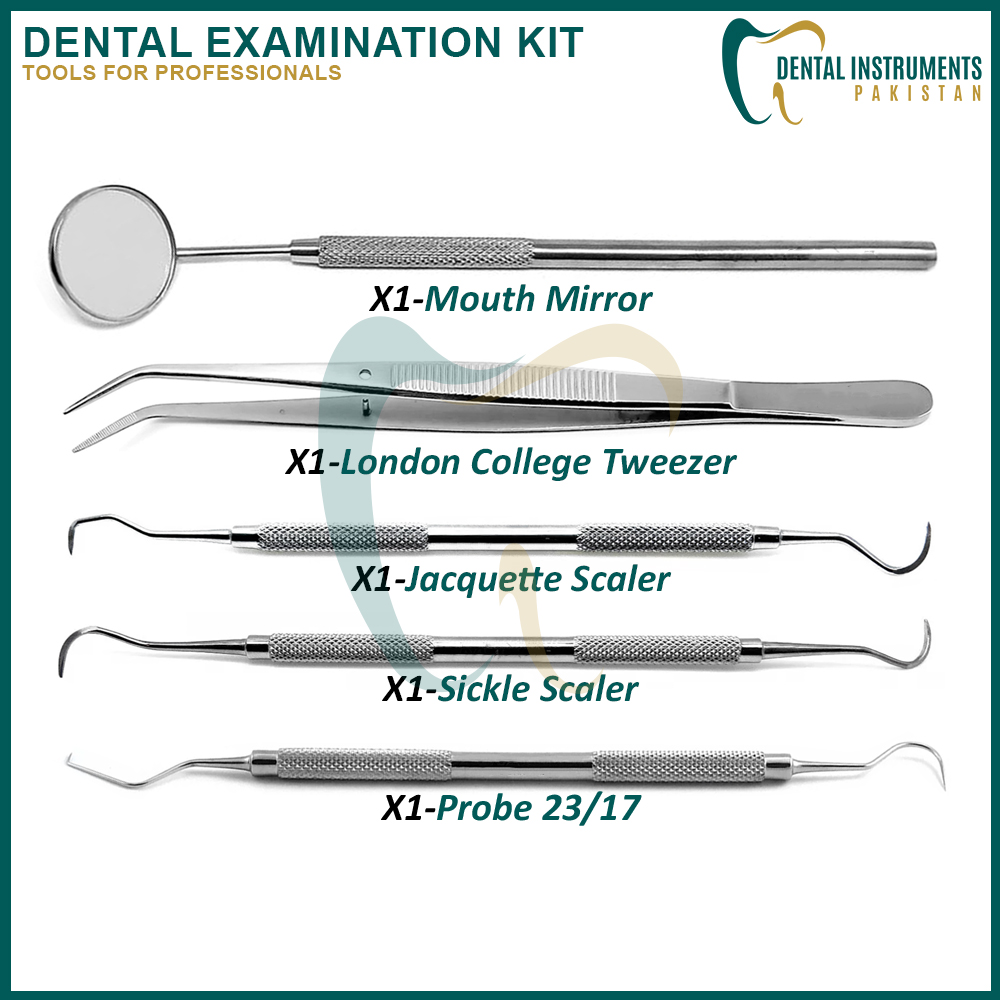 The Dental Examination Kit Set of 5 is a comprehensive toolset designed for accurate and efficient oral examinations and hygiene procedures. Perfect for dentists, hygienists, students, and home users, this kit includes all the essential instruments needed for identifying dental issues and maintaining oral health.