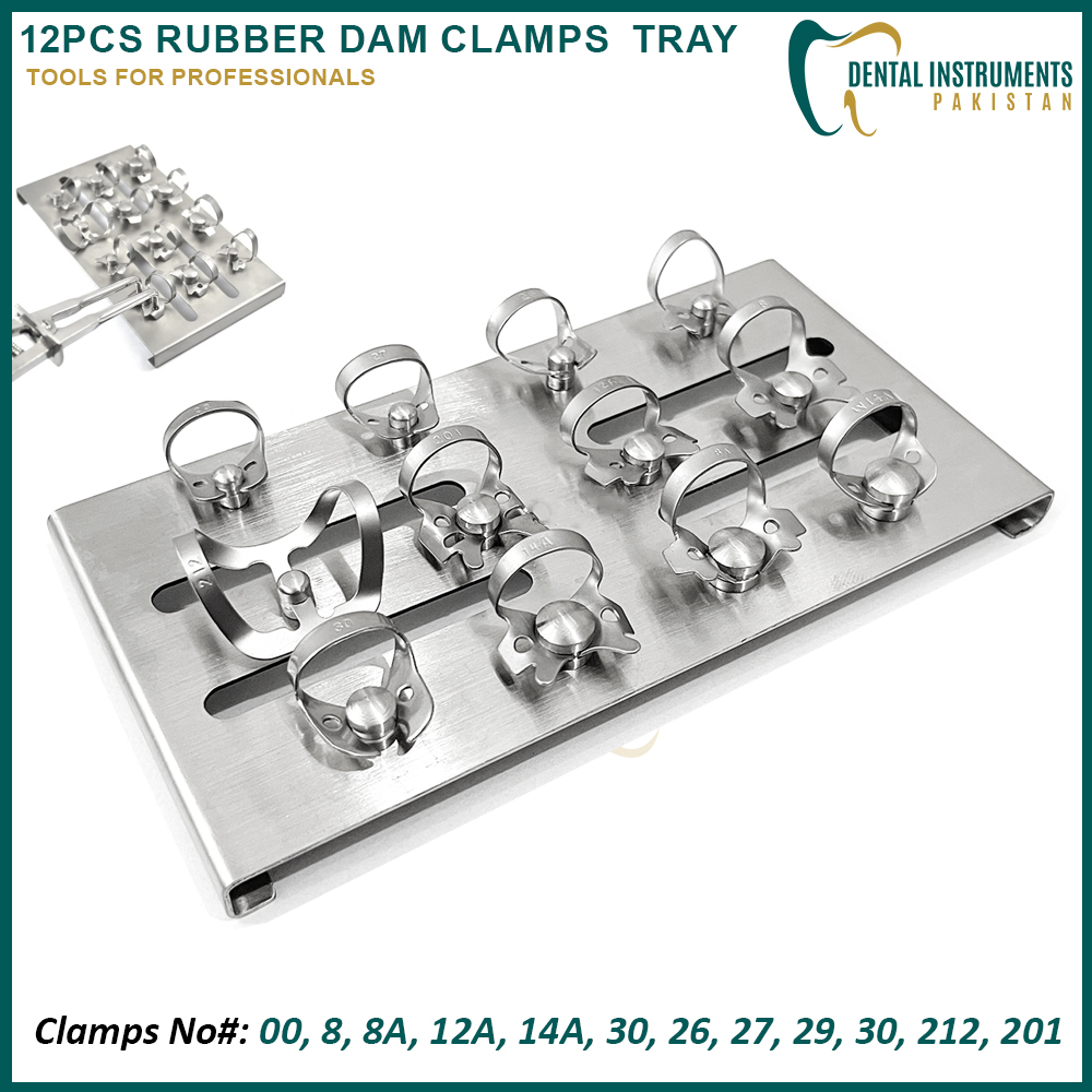 Rubber Dam Clamps Tray (12Pcs) | Dental Instruments Pakistan
